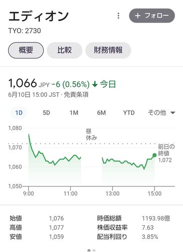 エディオンの株主優待が届いた方のブログを発見。 100株で3000円分の株主優待はエディオン店舗ではもちろんエディオンのネット店舗でも使えるし、そのネット店舗は家電だけではなくて食料品や生活消耗品も充実してるからとてもいい株!1年以上の保有で4000…